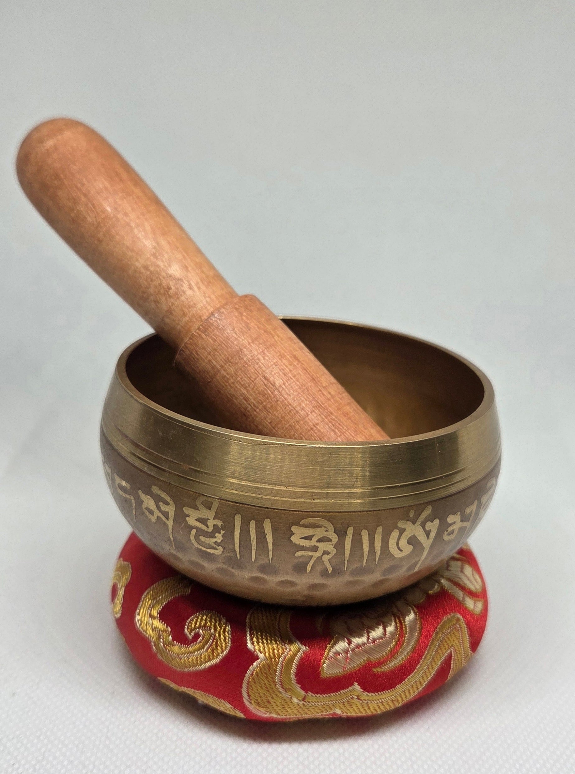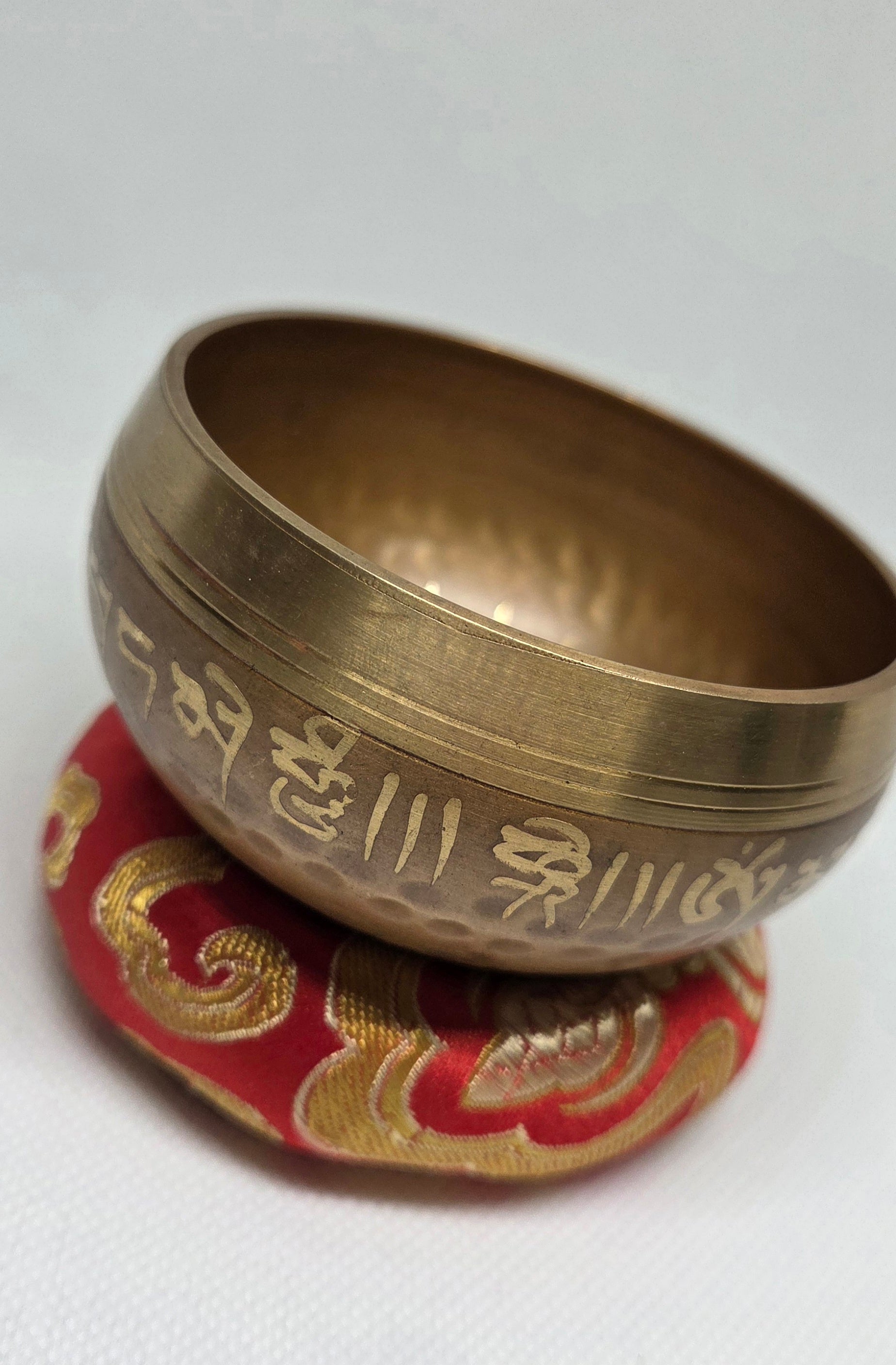 Bol Chantant Tibétain OM – Cuivré Doré avec Coussin & Baguette (80 mm)