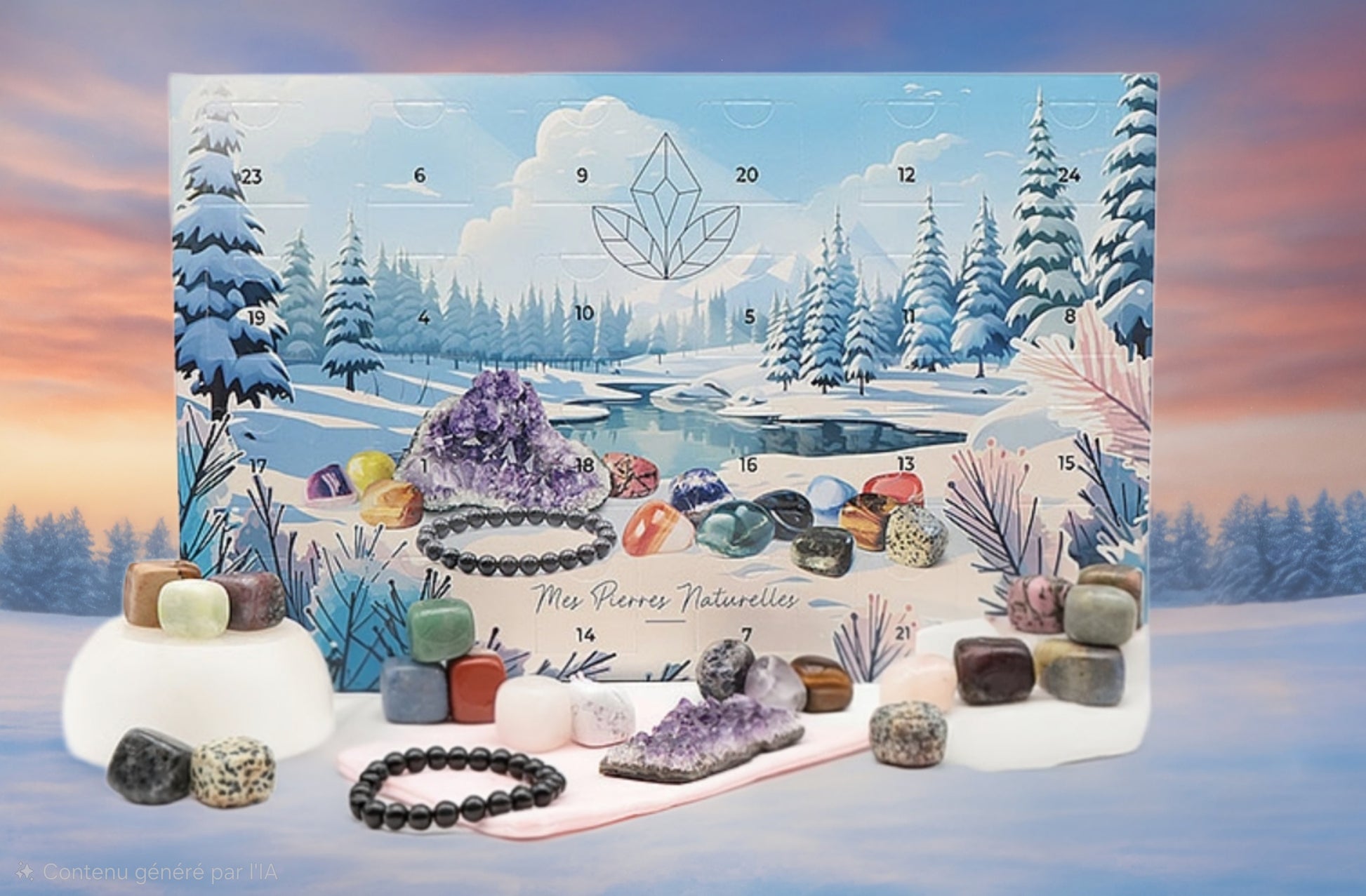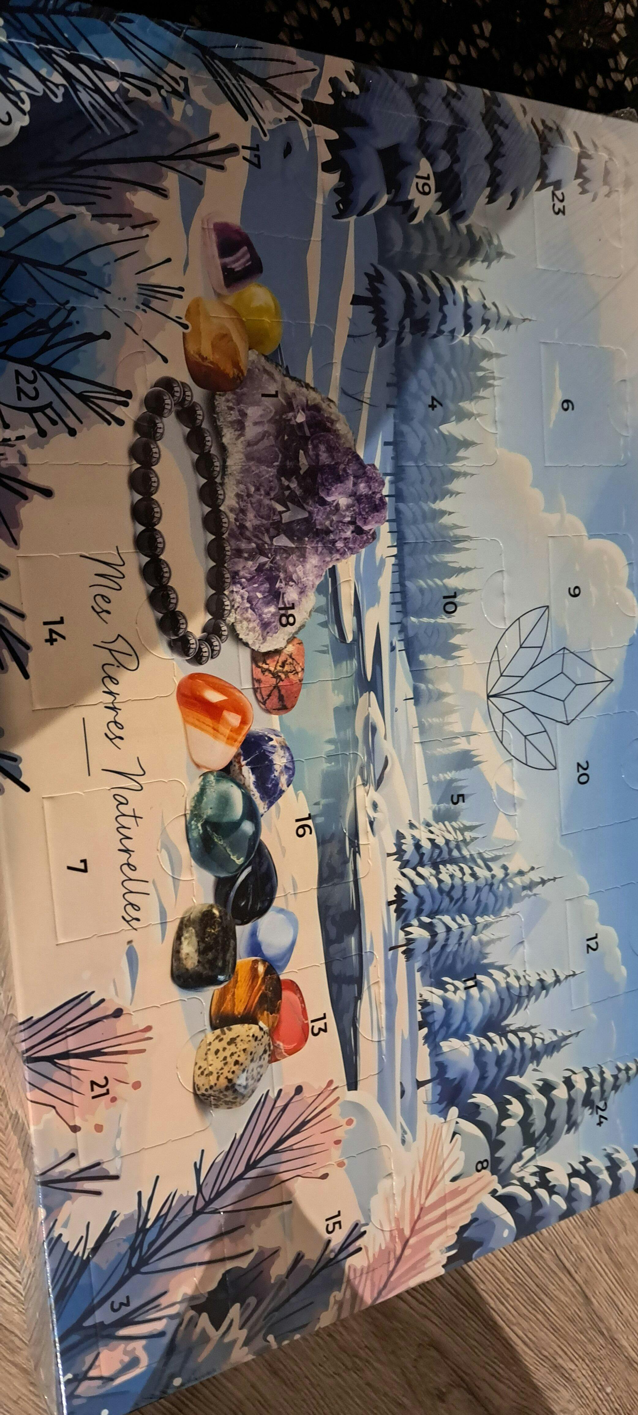 Plongez dans la magie de l’Avent avec ce magnifique calendrier lithothérapie renfermant 24 trésors énergétiques.